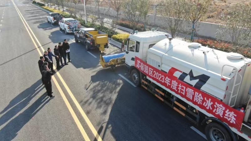 為切實(shí)做好今年冬季的掃雪除冰工作,提升應(yīng)急處置能力,11月24日下午,建發(fā)公司組織開展除雪除冰應(yīng)急演練。宿遷市交警二大隊(duì)副大隊(duì)長肖巖松、園區(qū)城維處處長孫建、建發(fā)公司副總經(jīng)理倪松參加演練活動。
