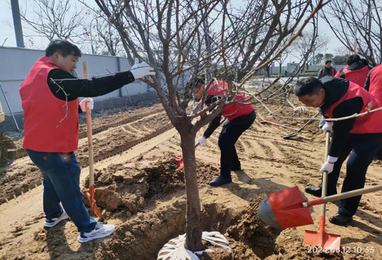 活動(dòng)現(xiàn)場(chǎng)黨旗飄揚(yáng),黨員干部熱情高漲,揮鍬鏟土、扶樹(shù)填土,每個(gè)環(huán)節(jié)都銜接有序、一絲不茍,呈現(xiàn)出一片熱火朝天的忙碌景象,展現(xiàn)了黨員干部積極向上的精神風(fēng)貌。在大家的共同努力下,一株株新栽樹(shù)苗昂然挺立,錯(cuò)落有致,煥發(fā)勃勃生機(jī),為園區(qū)增添一片綠色。