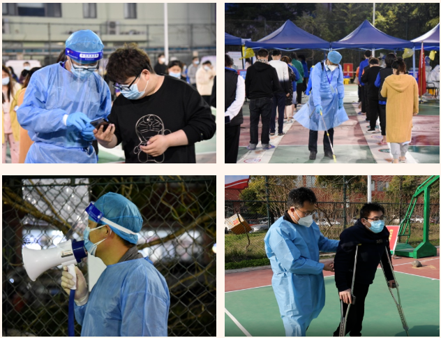在這個集宿區(qū)內(nèi),有一群人奮戰(zhàn)在抗疫最前線。大白小藍(lán)是他們最矚目的通行證、工作證,他們身份多樣,上演著超級“變、變、變”,他們既是細(xì)致入微的醫(yī)生助手,也是發(fā)放物資的大力水手,還是現(xiàn)場保障的行家里手。