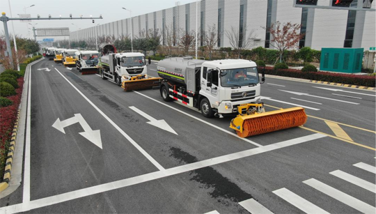 “開始演練!”隨著一聲令下,所有人員、設(shè)備迅速集結(jié),按照預(yù)定到達(dá)指定位置,掃雪除冰演練正式拉開帷幕。本次演練以機(jī)械為主,人工為輔,按照“雪前準(zhǔn)備、預(yù)警發(fā)布、啟動(dòng)應(yīng)急響應(yīng)”流程有序開展。演練中,一臺(tái)臺(tái)撒布機(jī)、雪滾車、雪鏟車等各類“除雪神器”輪番上陣,猶如吹響了掃雪除冰“集結(jié)號(hào)”。