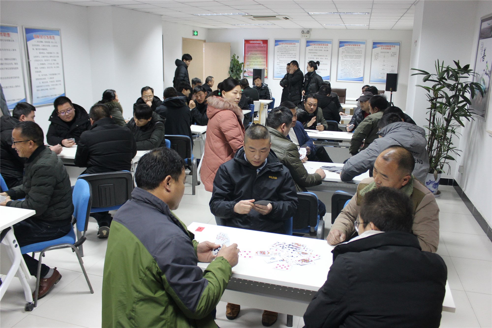 為豐富公司各項(xiàng)目業(yè)主業(yè)余生活,增進(jìn)業(yè)主與公司交流,傳遞鄰里情誼,營(yíng)造和諧的新春節(jié)日氛圍, 1月10日,由公司舉辦的摜蛋比賽在園區(qū)公舍民眾聯(lián)絡(luò)所拉開帷幕,各項(xiàng)目業(yè)主積極響應(yīng),共有40名選手參加比賽。