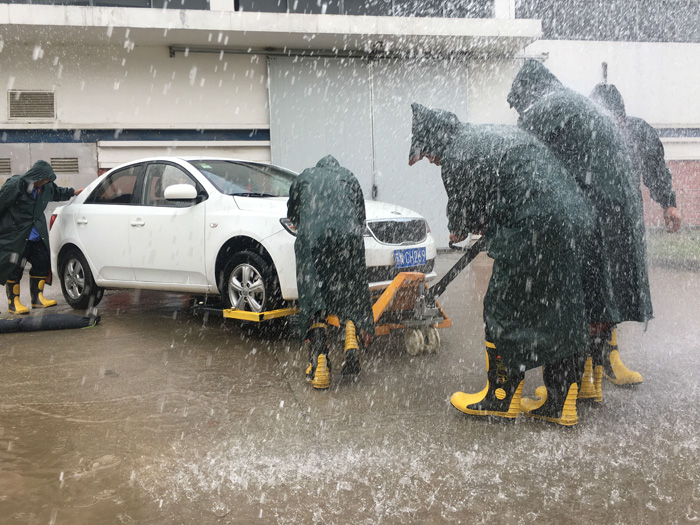 演練活動正式開始,近30人的防汛應(yīng)急分隊立即投入搶險戰(zhàn)斗,封堵組、防汛搶險組、轉(zhuǎn)移物資組、警戒組、工程組、排水組等小分隊密切配合,按照轉(zhuǎn)移路線有條不紊將車輛轉(zhuǎn)移到安全地帶。演練還假設(shè)暴雨水位逼近配電房門口,現(xiàn)場緊急調(diào)度搶險人員攜帶防汛器材和物資,先后進行了沙袋圍堰阻水、潛水泵抽水等處置措施,歷時半個小時,演練的五個項目全部按原計劃完成,達到預(yù)期效果。