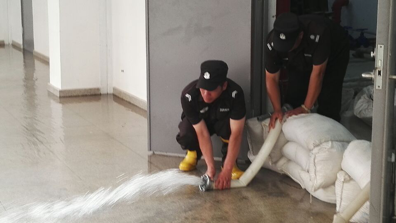 本次演練主要結(jié)合項(xiàng)目實(shí)際情況,在突發(fā)暴雨災(zāi)害發(fā)生時(shí),重點(diǎn)針對校園設(shè)備機(jī)房等重點(diǎn)區(qū)域,設(shè)置警戒,快速疏散現(xiàn)場人員及車輛,作利用防汛工具緊急排險(xiǎn),有效排除現(xiàn)場積水。