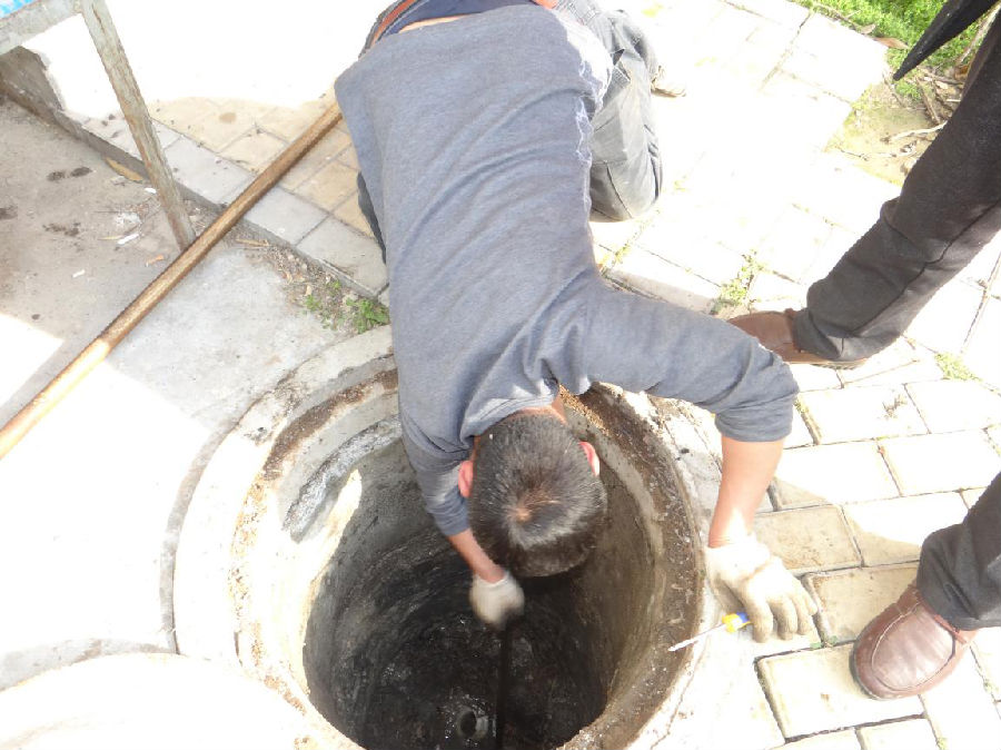工人依次將井蓋掀開,發(fā)現(xiàn)水泥井下面油污淤積致管道堵塞,其主要原因是,每日產(chǎn)生的殘羹剩菜和廢棄物未經(jīng)過濾網(wǎng)直接流入下水管道,固體垃圾進入管道遇到油污后導(dǎo)致管道堵塞。