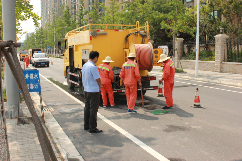 本次演練模擬強(qiáng)降雨期間,指揮部接到巡查組報(bào)告,園區(qū)某道路出現(xiàn)嚴(yán)重積水現(xiàn)象。指揮部立即通知搶險(xiǎn)組前往處置,經(jīng)查為管道堵塞所致。搶險(xiǎn)組立即調(diào)動(dòng)雨水管道疏通車趕往現(xiàn)場,經(jīng)過緊急疏通管道恢復(fù)暢通,路面積水消除。隨后對該段管道進(jìn)行CCTV檢測,排查堵塞原因,為后期養(yǎng)護(hù)提供依據(jù)。