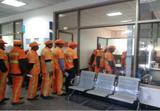 晴天一身灰,雨天一身泥,由于工作的特殊性,環(huán)衛(wèi)工人一年四季與垃圾、煙塵打交道,身體健康受到一定程度的影響。為了讓城市美容師更好地了解自己的健康狀況,擁有更加健康的體魄,在市總工會(huì)的統(tǒng)一安排下,園區(qū)的精心組織下,5月16日,園區(qū)130多名環(huán)衛(wèi)工人統(tǒng)一參加了免費(fèi)體檢。